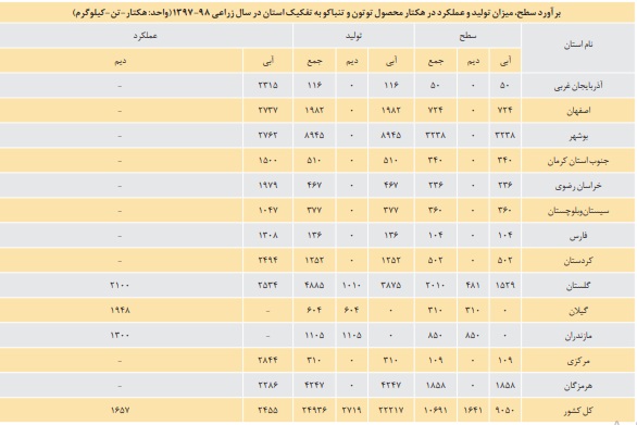 سطح زیر کشت توتون و تنباکو در ایران چقدر است؟