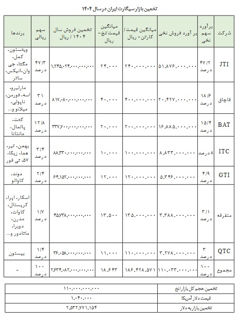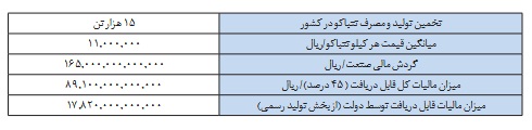 ﺑﺮآورد ﺗﻮﻟﻴﺪ و ﻣﺎﻟﻴﺎت ﺑﺎزار ﺗﻨﺒﺎﻛﻮی ﻣﻌﺴﻞ ﻛﺸﻮر در ﺳﺎل 1404