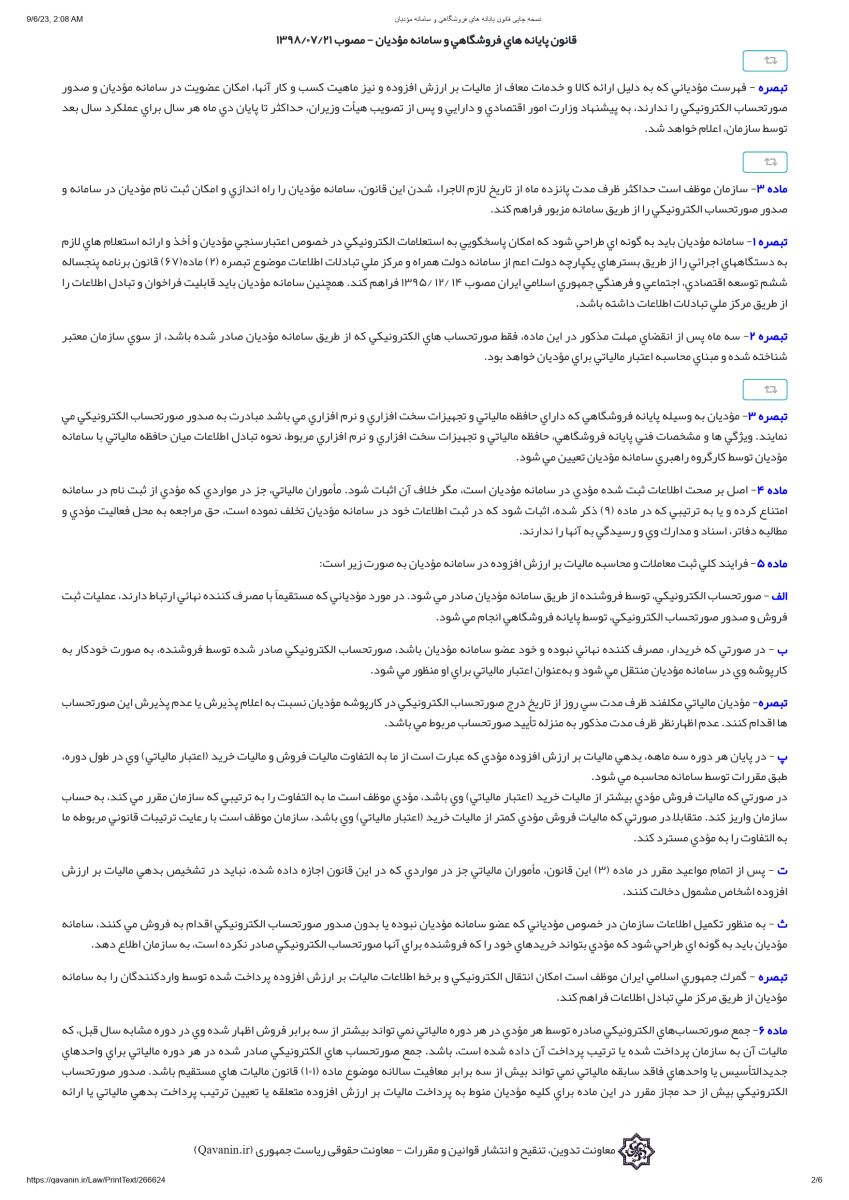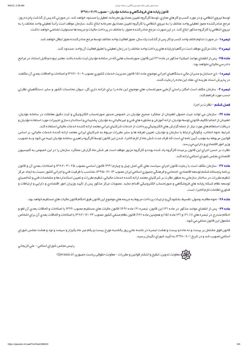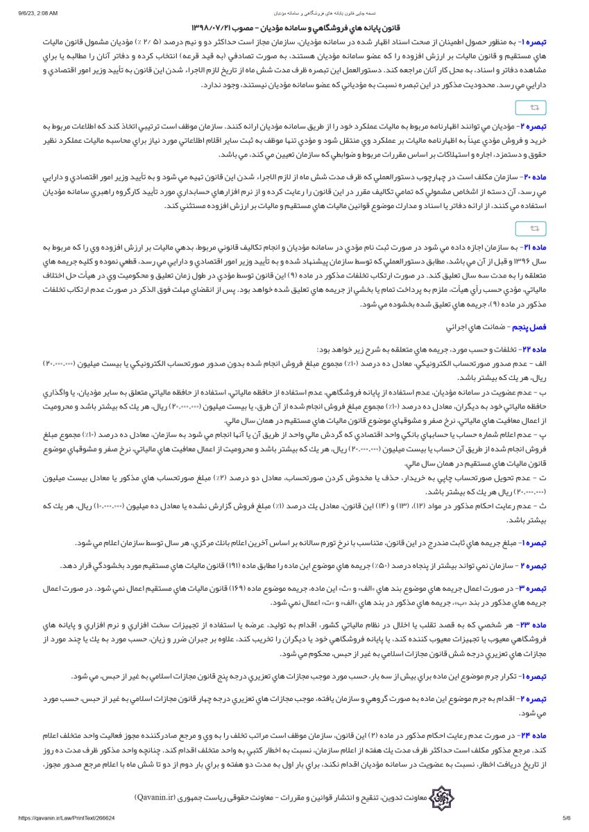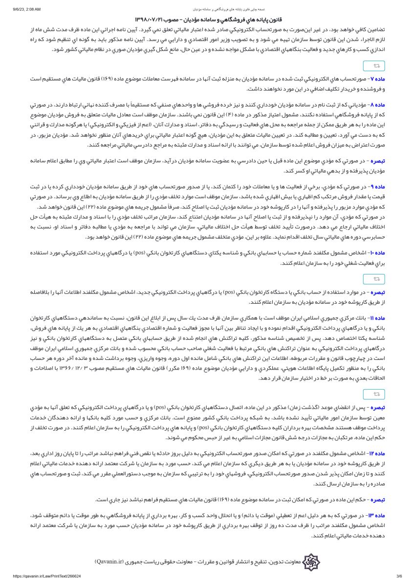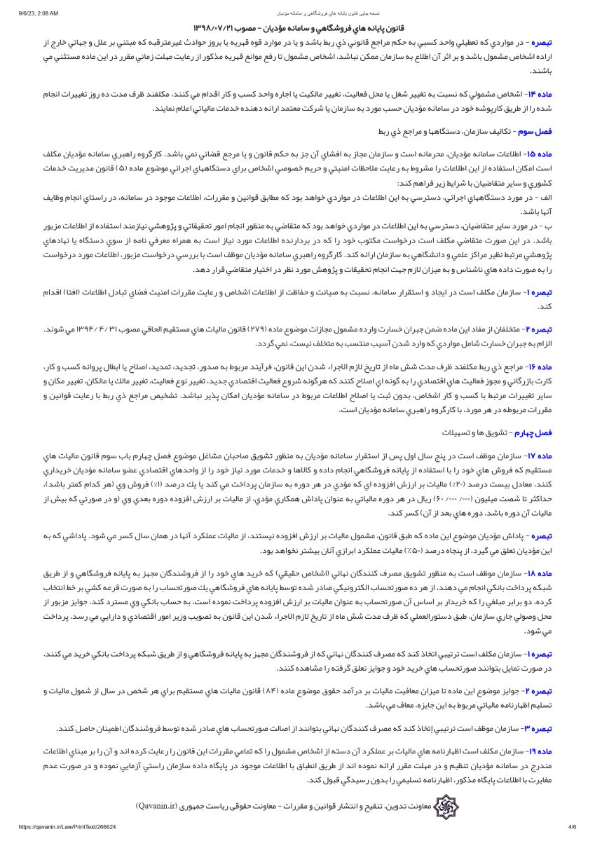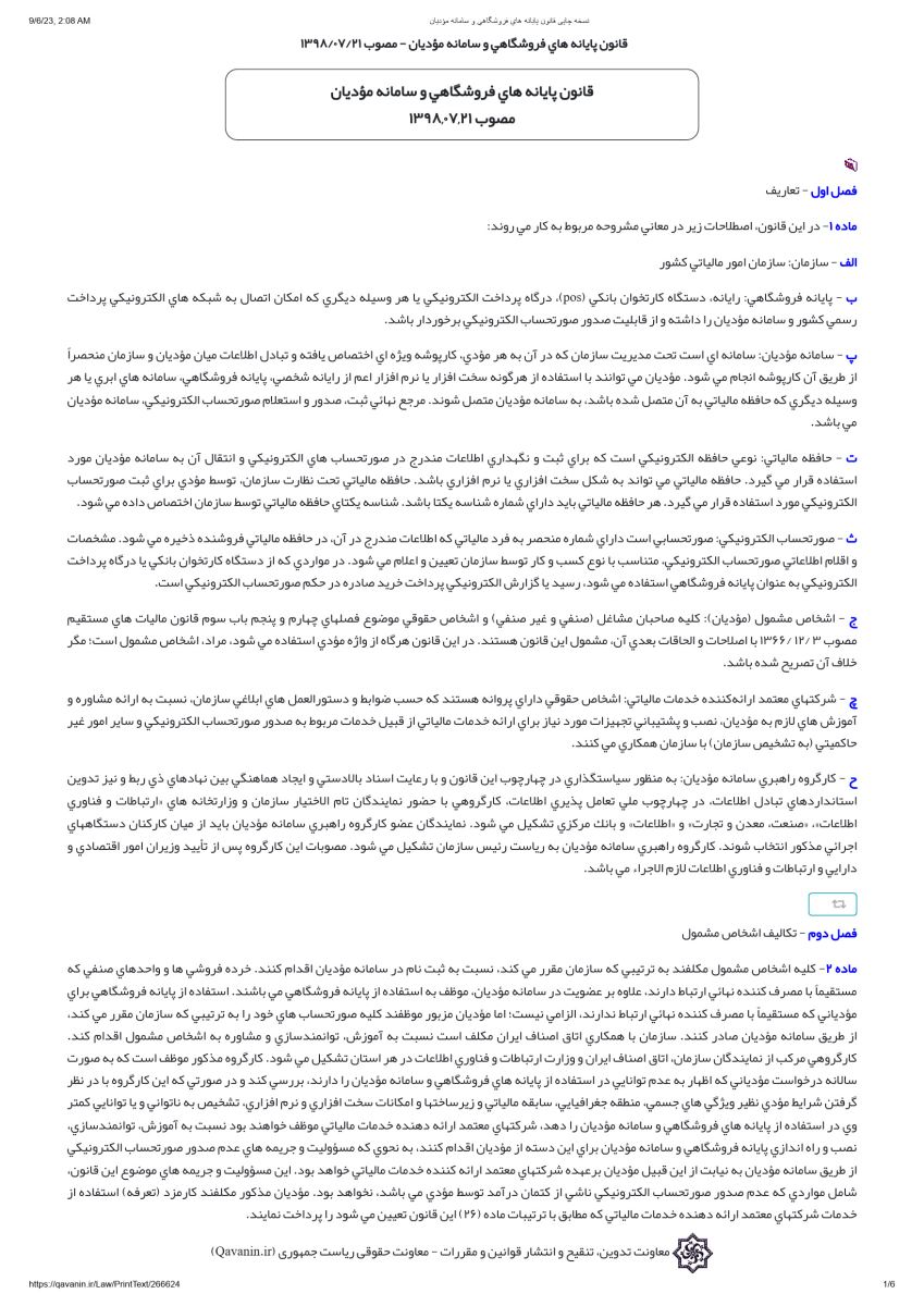 قانون پایانه های فروشگاهی و سامانه مودیان مصوب 21 مهر 1398