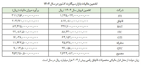 ﺑﺮآورد ﺗﻮﻟﻴﺪ و ﻣﺎﻟﻴﺎت ﺑﺎزار ﺗﻨﺒﺎﻛﻮی ﻣﻌﺴﻞ ﻛﺸﻮر در ﺳﺎل 1404