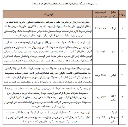 ﻣﺎﻟﻴﺎت اﻧﻮاع ﺗﻨﺒﺎﻛﻮى ﻣﻌﺴﻞ ﺣﺪود 40 ﺗﺎ 45 درﺻﺪ ﻗﻴﻤﺖ ﺑﺎزار اﻳﻦ ﻣﺤﺼﻮﻻت اﺳﺖ، ﻫﻤﻴﻦ اﻣﺮ ﻣﻮﺟﺐ ﺷﺪه ﺑﺨﺶ زﻳﺎدى از ﻣﺤﺼﻮل ﻋﺮﺿﻪ ﺷﺪه در اﻳﻦ ﺑﺎزار(ﺣﺪود 80 درصد) ﺑﺎ ﻫﺪف ﻓﺮار ﻣﺎﻟﻴﺎﺗﻲ ﺑﻪ ﺻﻮرت ﻏﻴﺮ ﻣﺠﺎز ﻋﺮﺿﻪ ﺷﻮد. اﻓﺰاﻳﺶ ﺑﻲ روﻳﺔ ﻣﺎﻟﻴﺎت اﻧﻮاع ﺳﻴﮕﺎرت ﻧﻴﺰ ﻣﻲﺗﻮاﻧﺪ ﺑﺎزار اﻳﻦ ﻣﺤﺼﻮل را ﺑﻪ ﺳﺮﻧﻮﺷﺖ ﻣﺸﺎﺑﻬﻲ دﭼﺎر ﻛﻨﺪ.